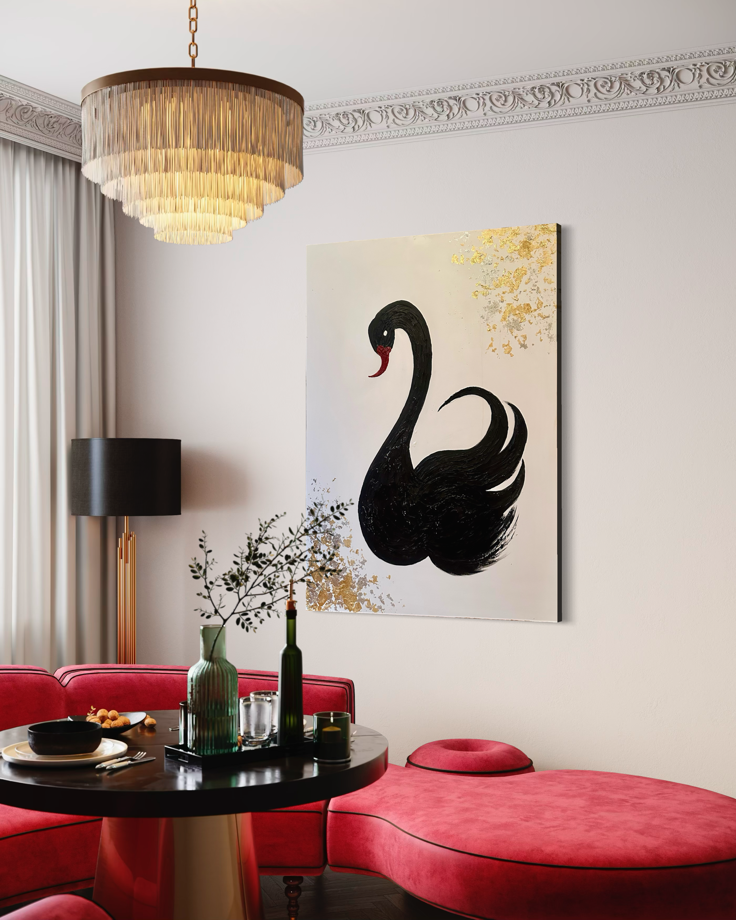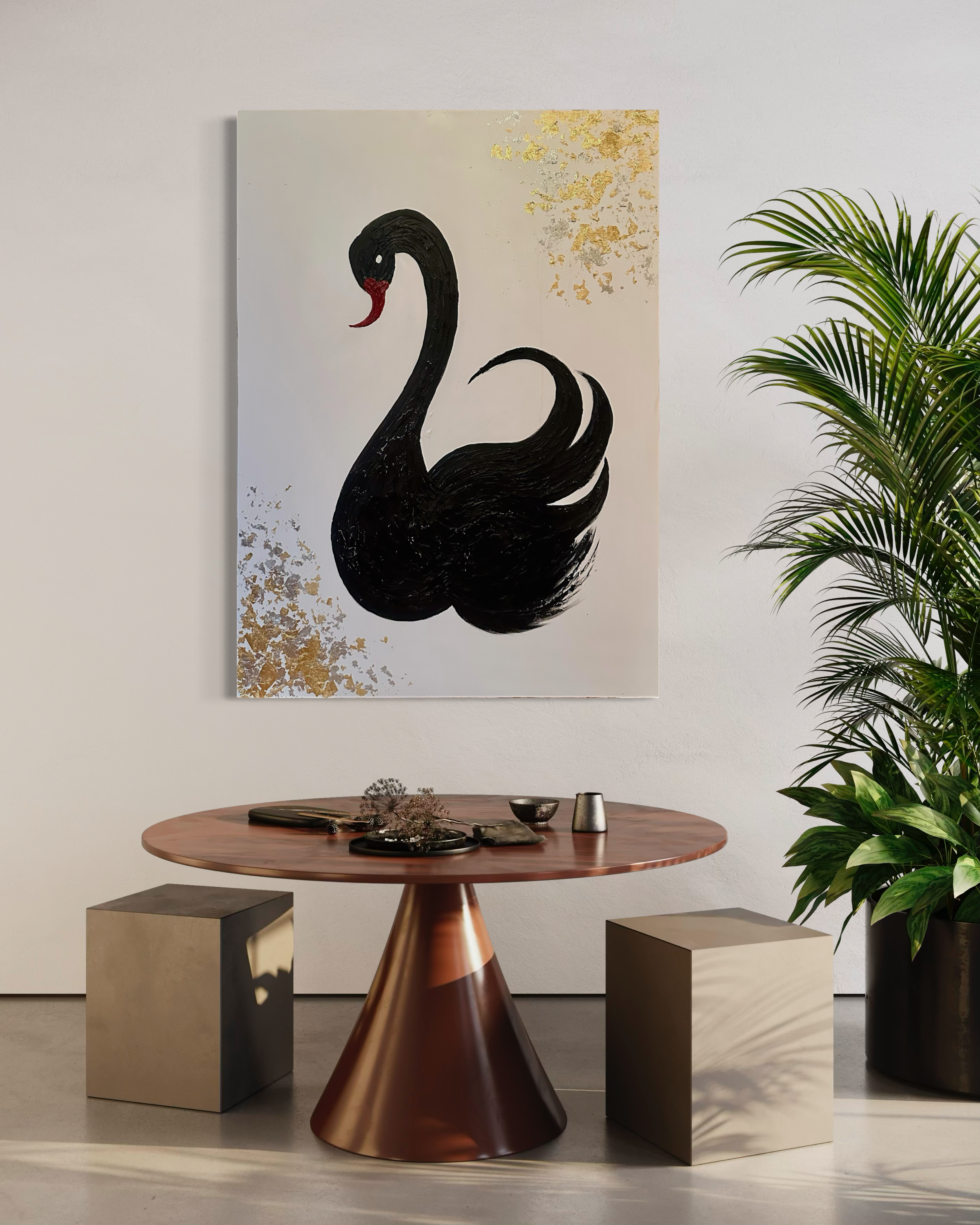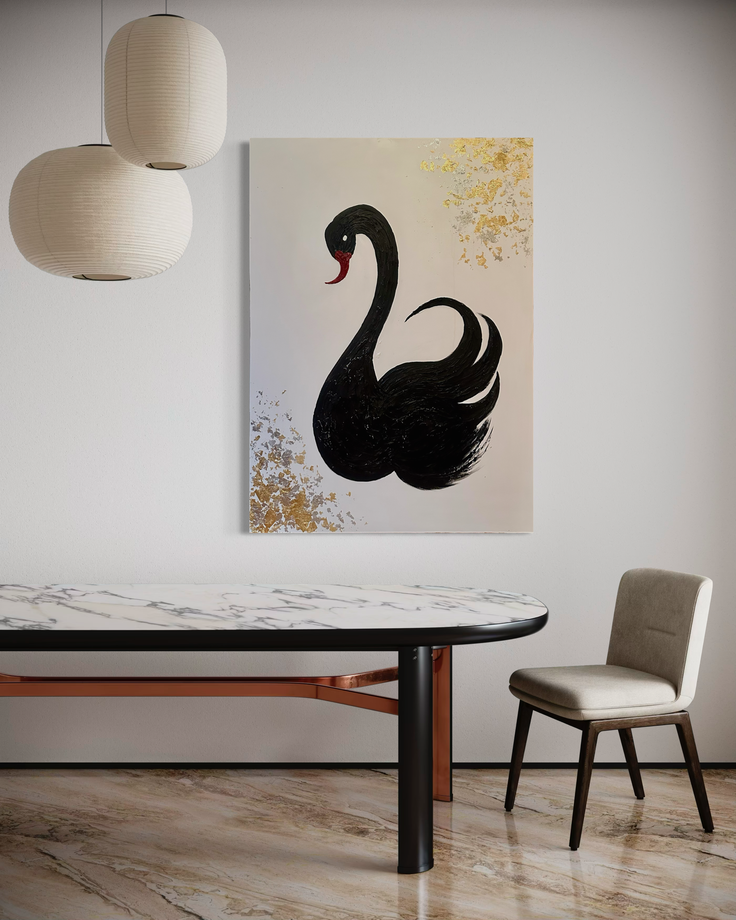 Black Swan Energy captures the transformative power of unexpected moments through dynamic mixed media composition. This striking 30x40 inch canvas merges multiple artistic techniques to create depth and movement, exploring themes of elegance, resilience, and dramatic transformation. The sophisticated layering of materials invites contemplation of life's pivotal turning points—those rare, beautiful instances that reshape our perspective. A compelling statement piece for collectors who appreciate conceptual art with emotional resonance.