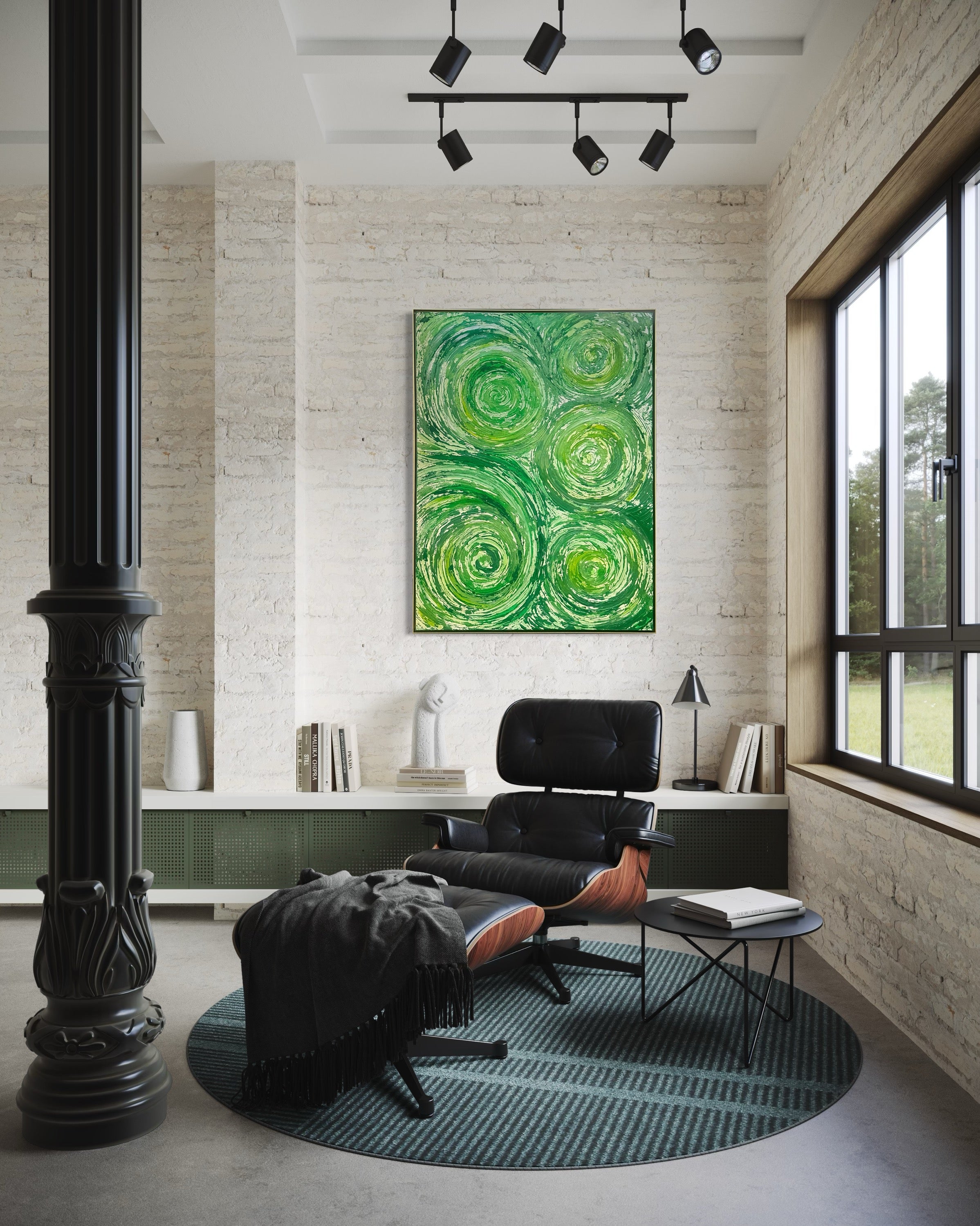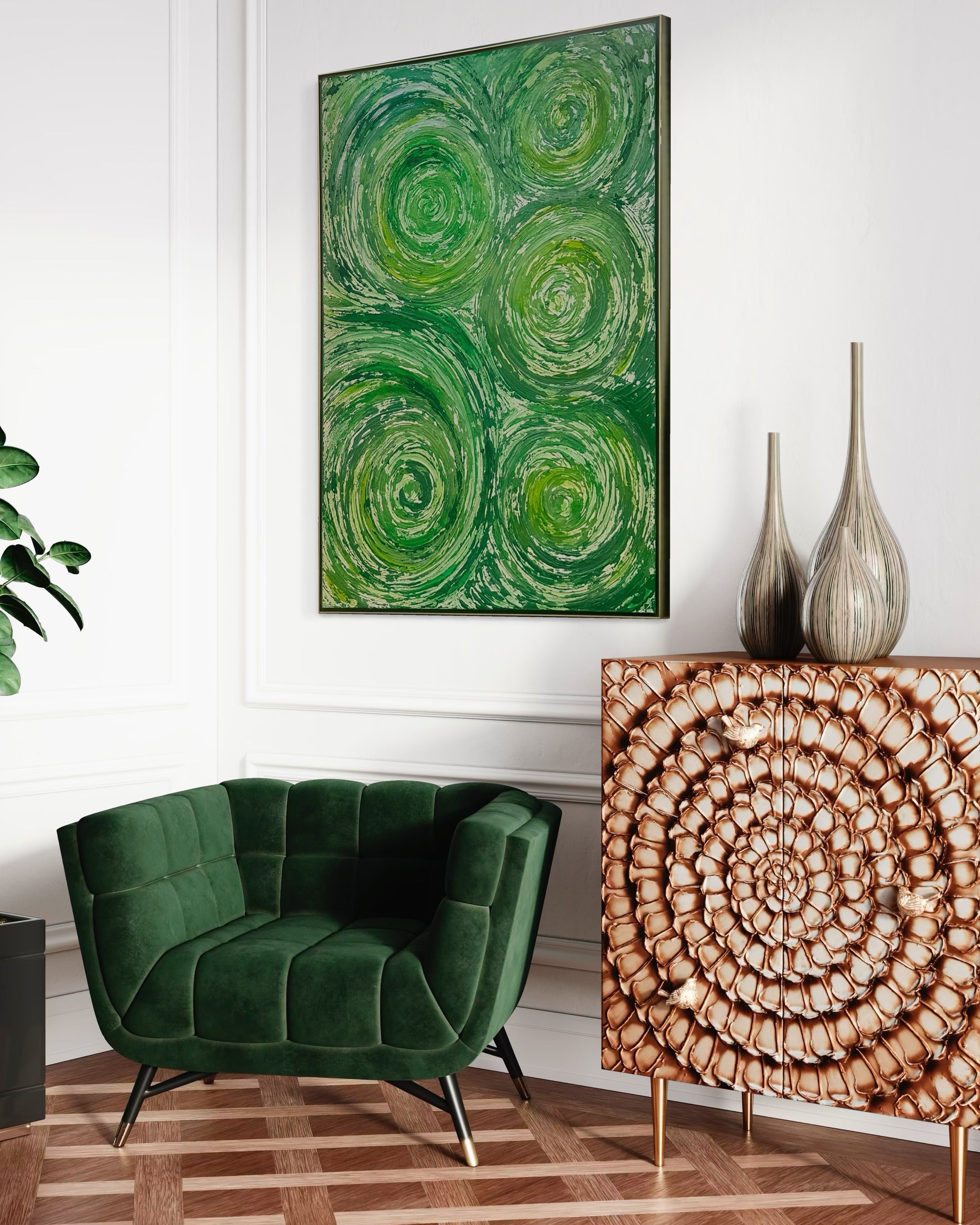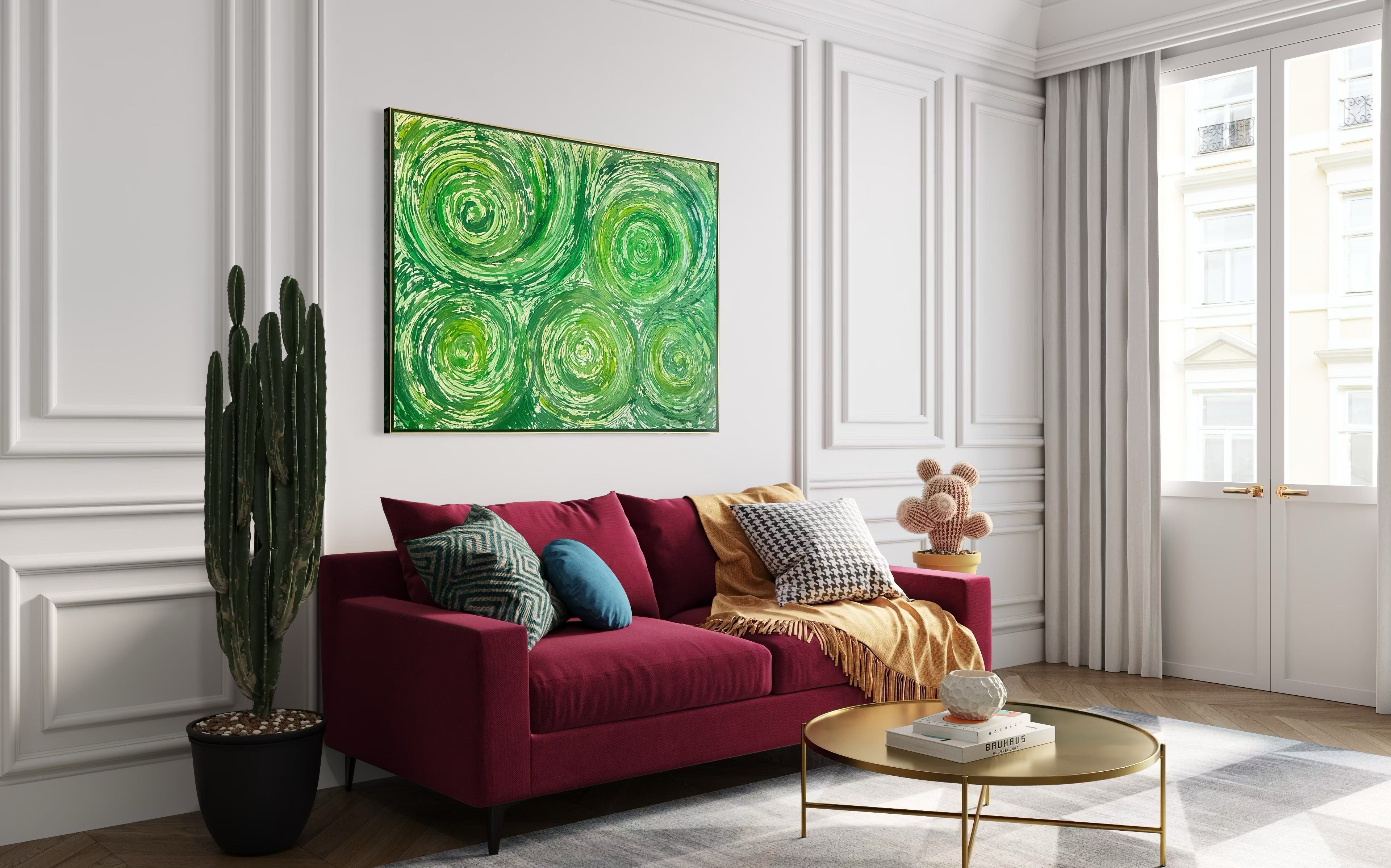 This sophisticated acrylic on canvas artwork, framed in elegant gold, captures the serene essence of an oasis. Its rich textures and harmonious hues evoke a tranquil refuge, perfect for adding a refined touch of calm and beauty to any living space.