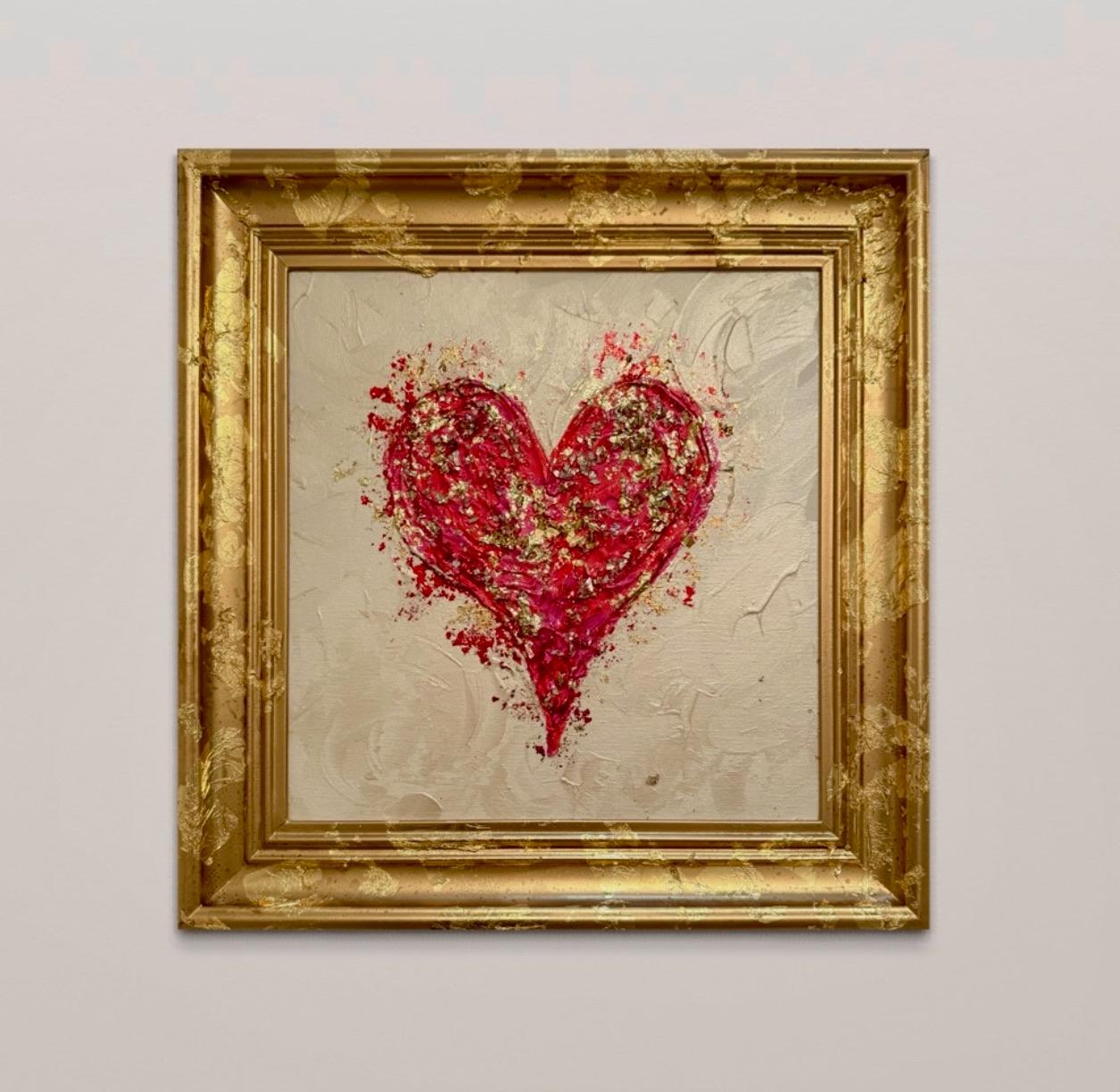“Ruby Love” is a sophisticated 12x12 inch mixed media artwork on canvas, elegantly framed to enhance its presence. This piece combines texture and color to create a captivating visual experience, perfect for adding refined artistic expression to any curated space. Its balanced composition invites contemplation, making it an exquisite addition to a discerning collection.