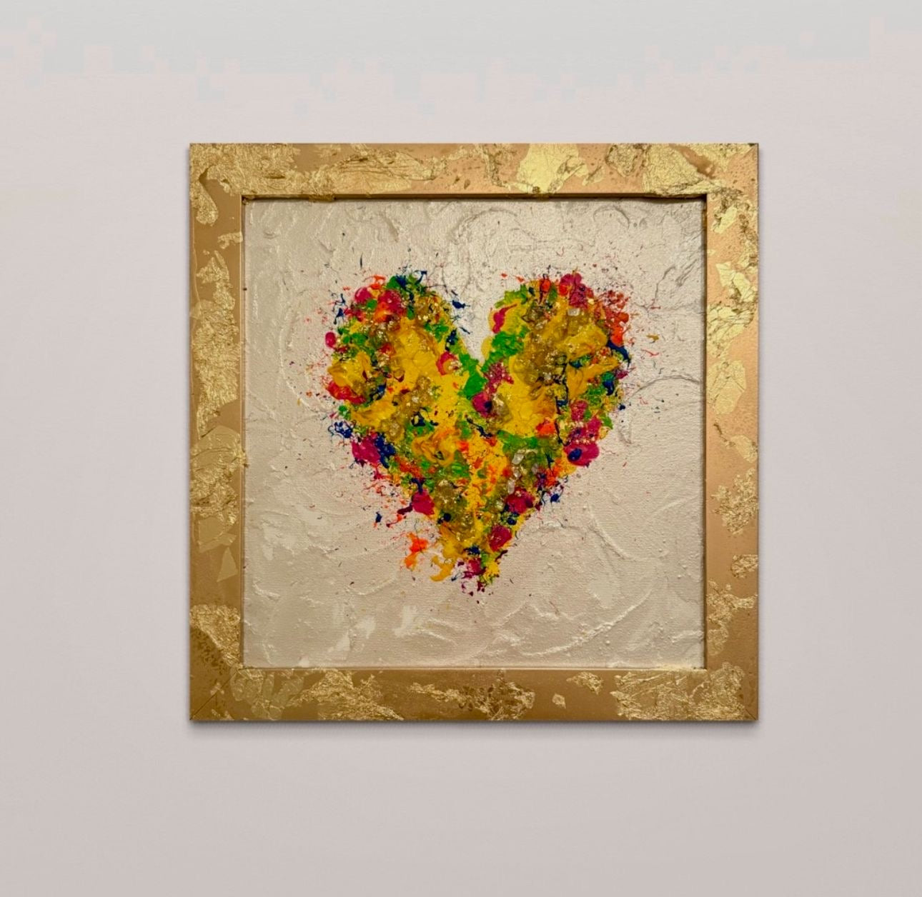 Indulge in Supernatural Love, a captivating masterpiece featuring a 12x12in frame intricately adorned with acrylic, glass, and gold leaf on canvas. Let the elegant combination of materials and textures evoke feelings of love and luxury in your space. Elevate your art collection with this exclusive piece.