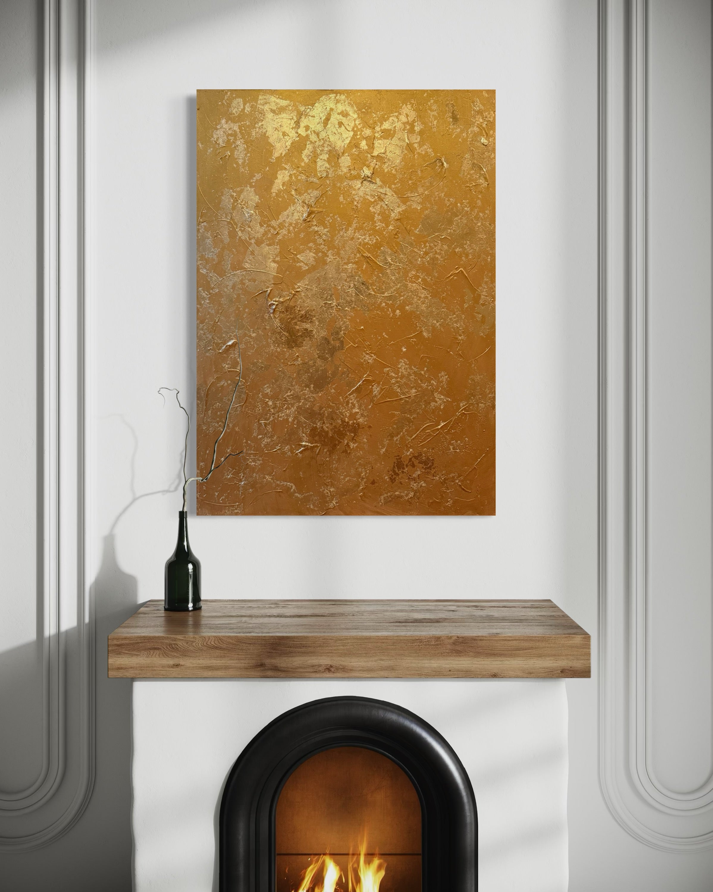 The Midas Touch captures the essence of opulence through a sophisticated mixed media composition on canvas. This striking 40x30 inch artwork commands attention with its dynamic interplay of textures and materials, elevated by an elegant gold frame that enhances its luxurious presence. Perfect for collectors seeking a statement piece that merges artistic depth with refined aesthetics, this work transforms any space into a gallery of distinction.