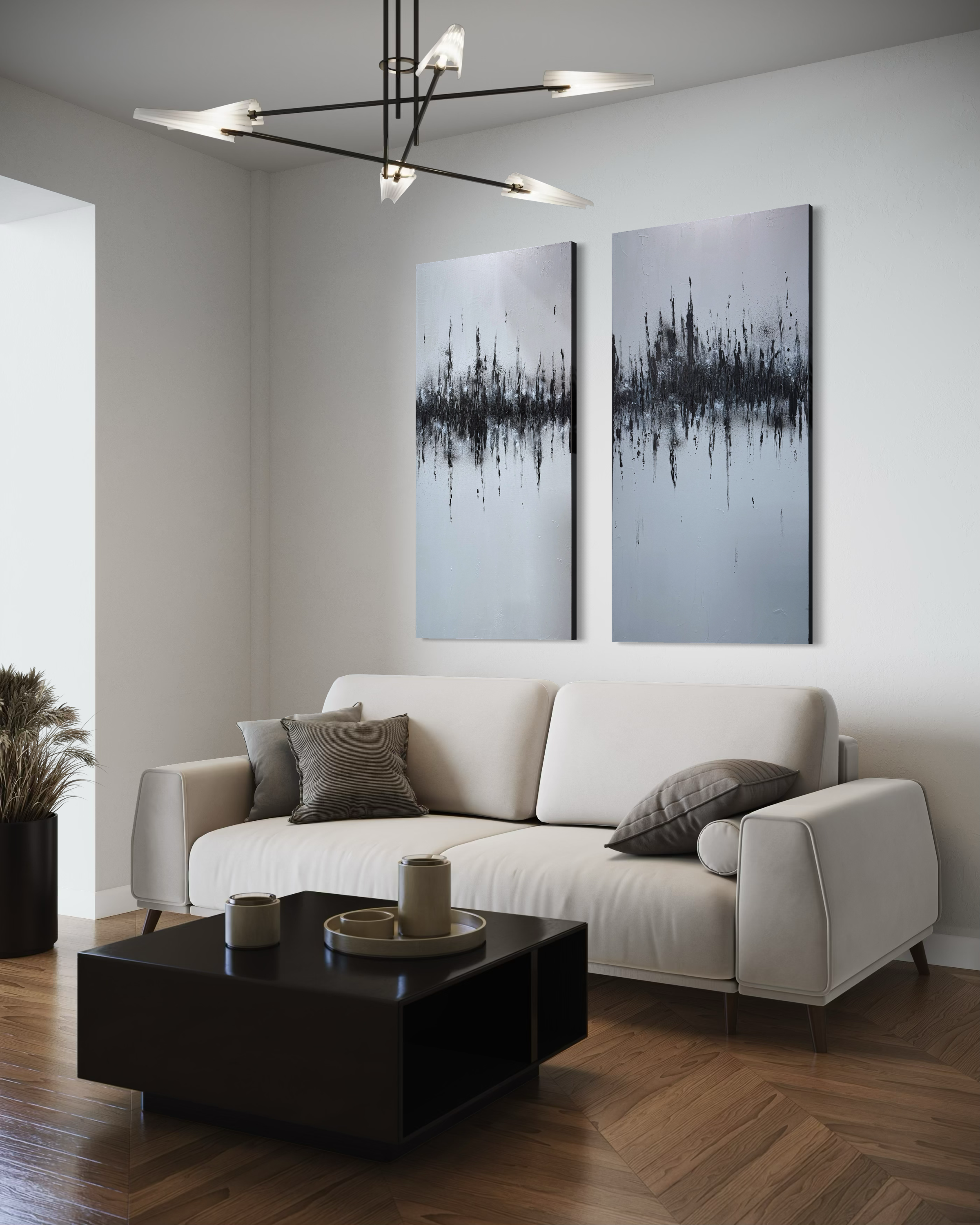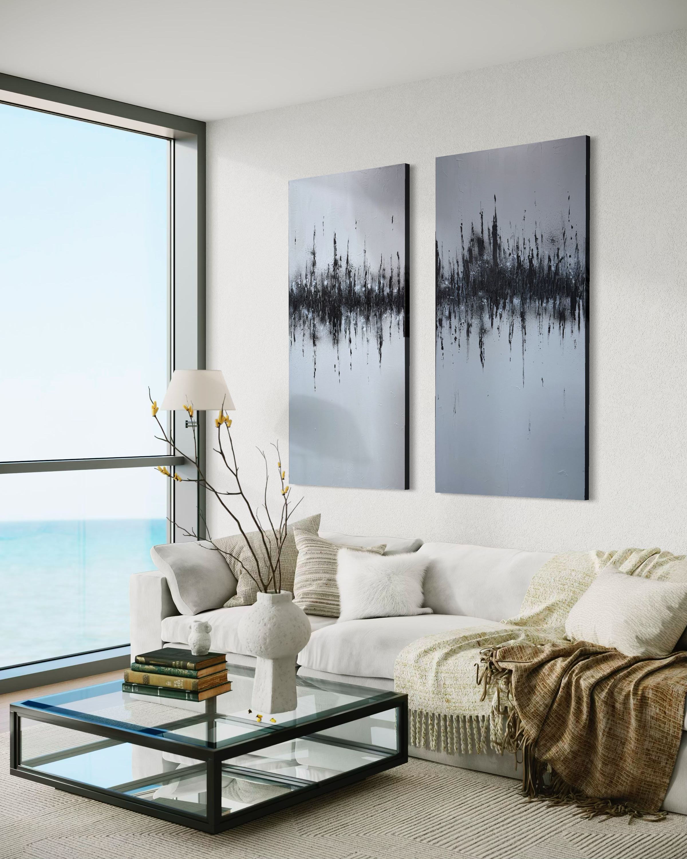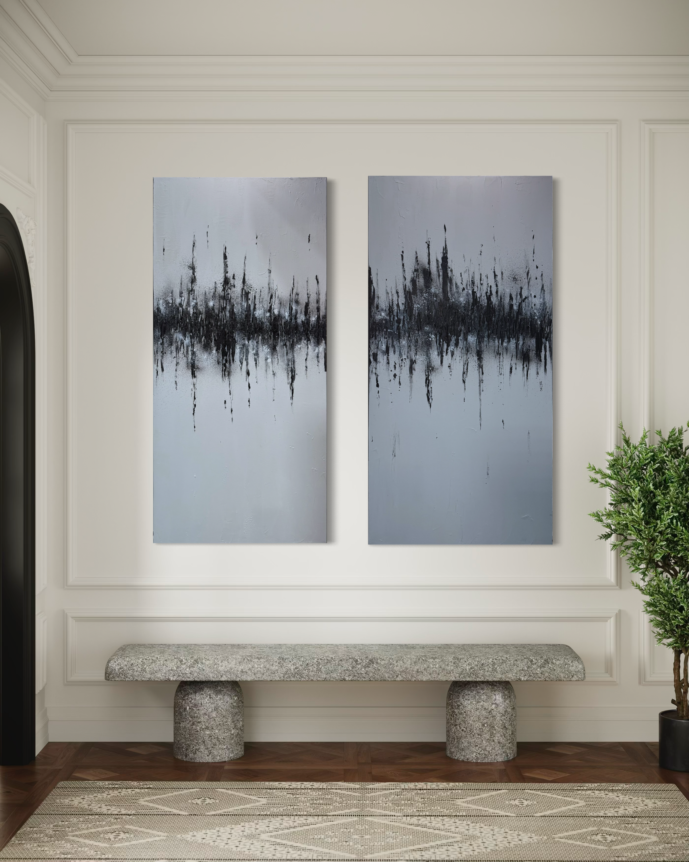 Vibes on Vibes is a striking 24x48 inch acrylic canvas that channels emotional complexity through expressive brushwork and commanding scale. The interplay of rich, saturated hues creates visual movement across the composition, establishing a sophisticated dialogue between color and form. This substantial piece commands attention in any interior, offering collectors a contemporary work that resonates with both artistic integrity and refined aesthetic sensibility.