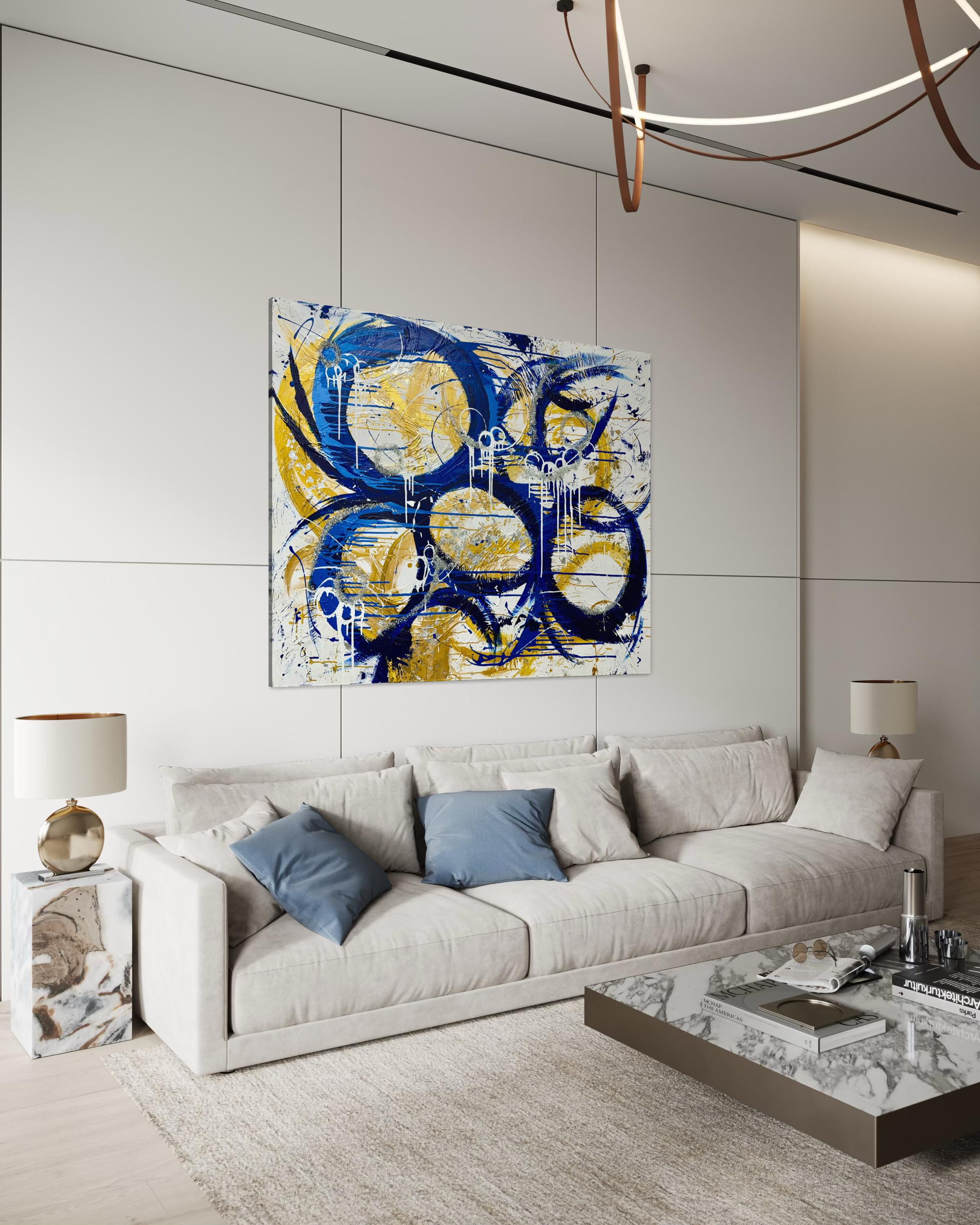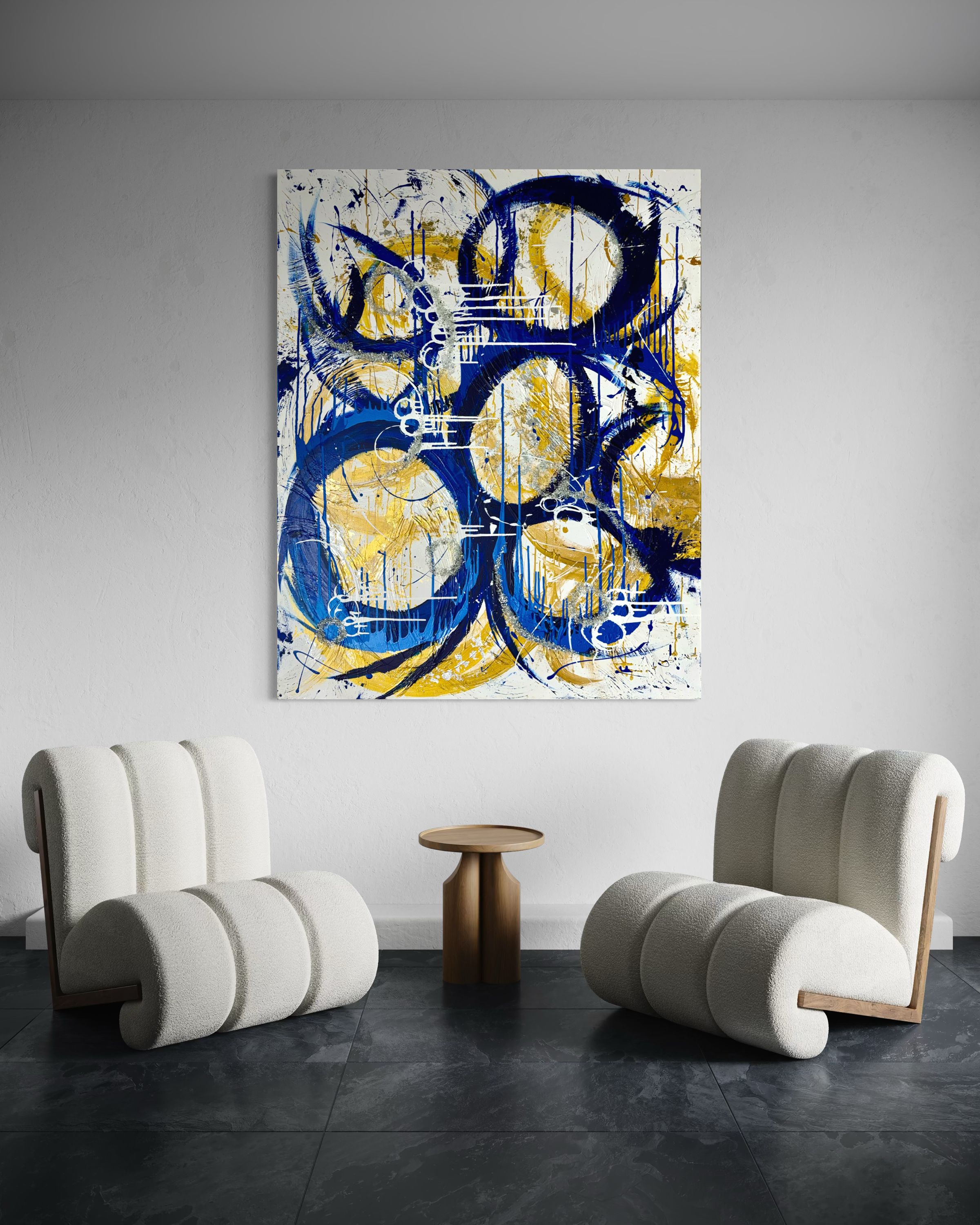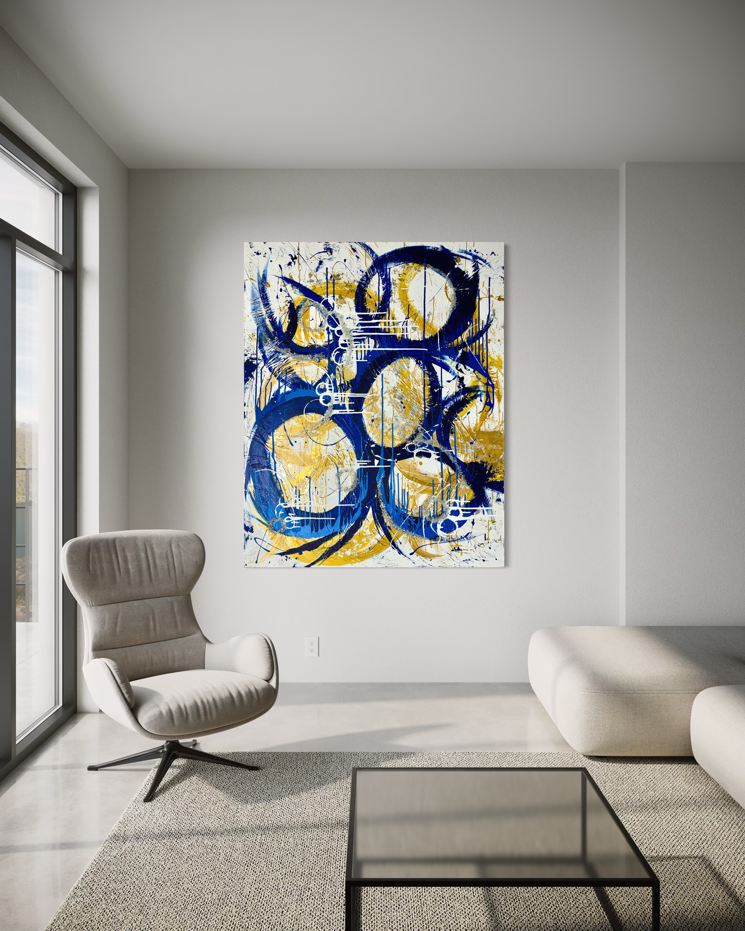 Victory is Mine - Indigo Edition is a striking mixed media canvas that commands attention in any space. This expansive 48x60 inch composition showcases the artist's mastery of layered techniques, with rich indigo tones creating depth and visual intrigue. The work balances bold artistic vision with refined execution, making it an exceptional choice for collectors who appreciate contemporary art with substance and presence. A sophisticated statement piece that elevates your environment.