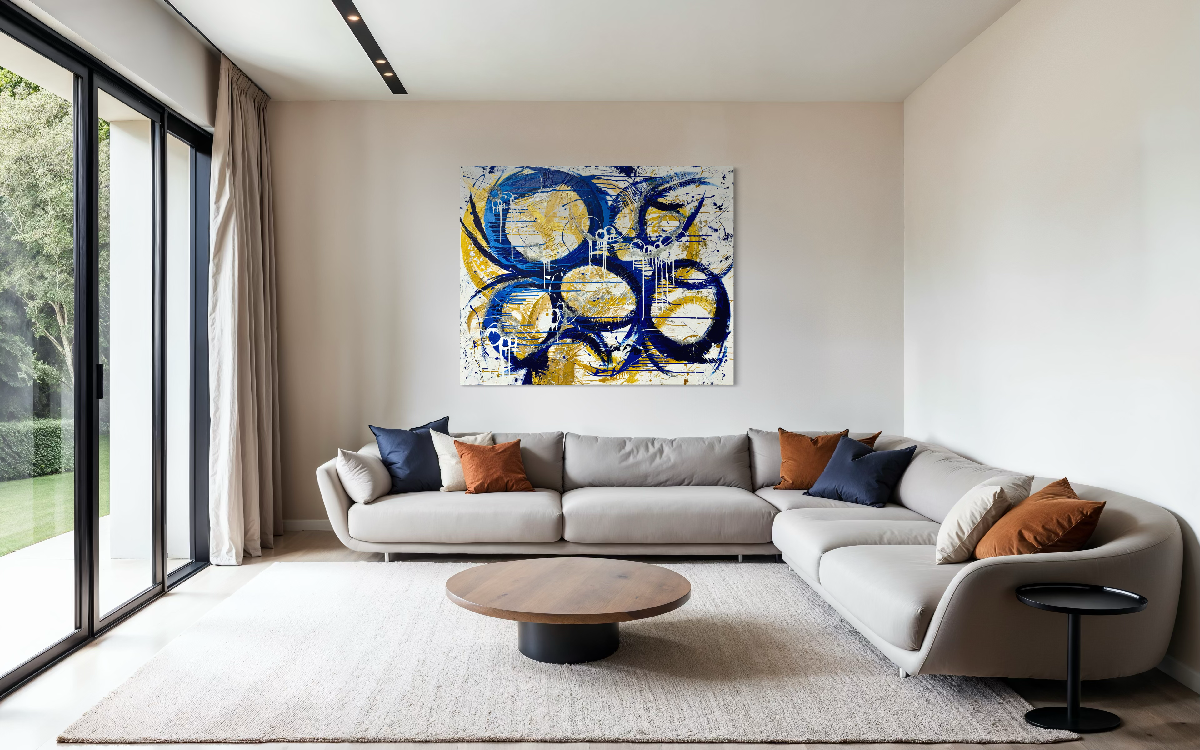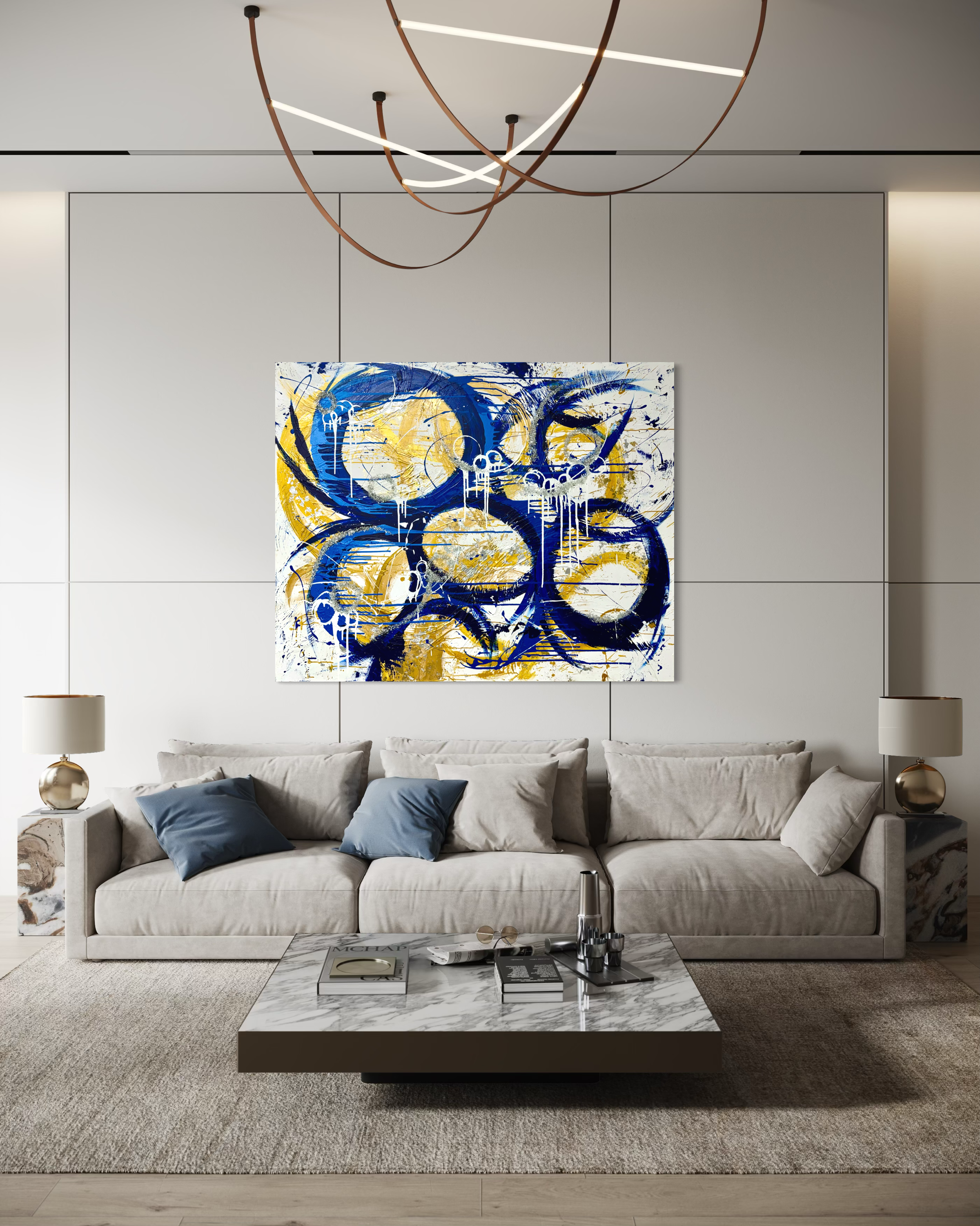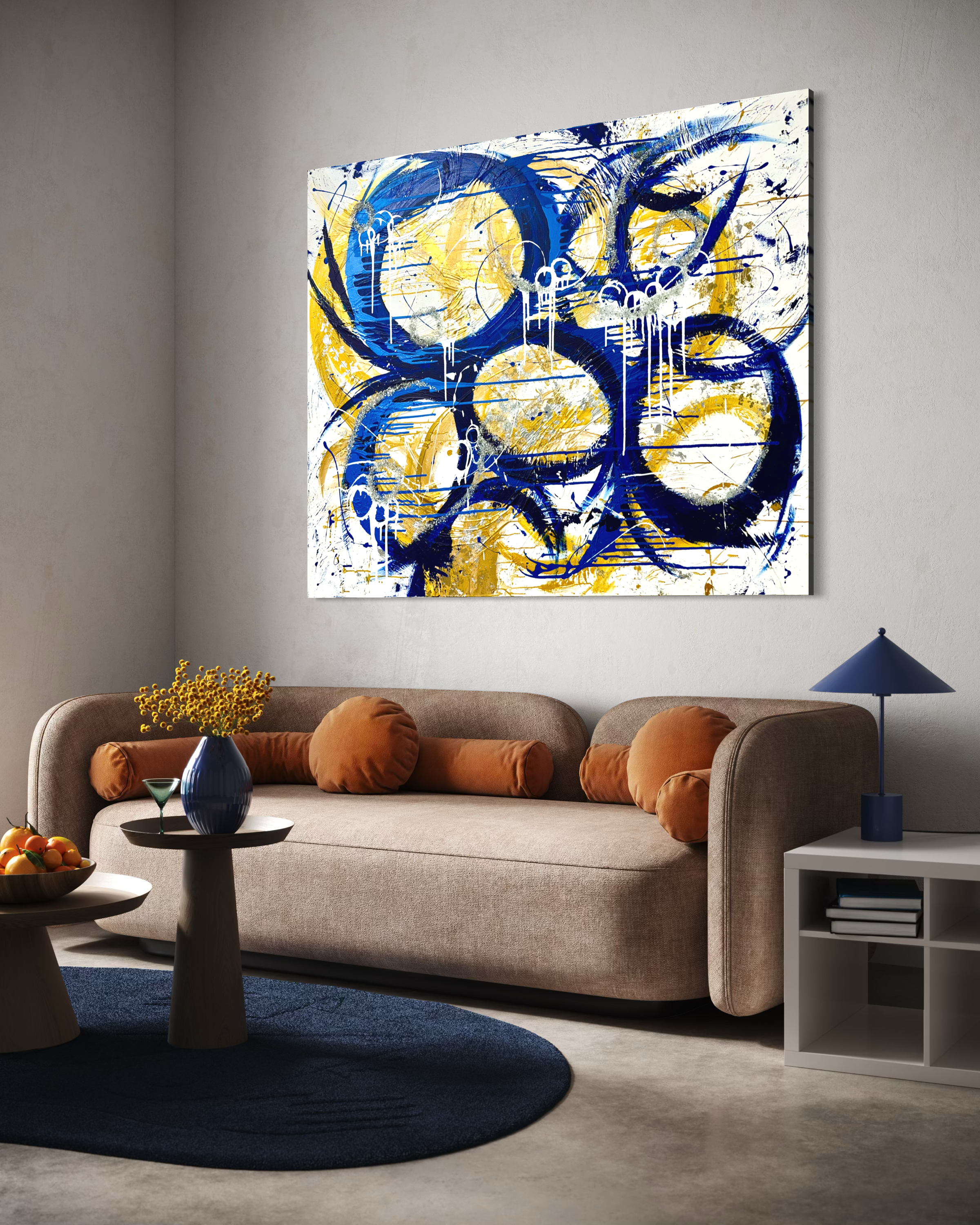 Victory is Mine - Indigo Edition is a striking mixed media canvas that commands attention in any space. This expansive 48x60 inch composition showcases the artist's mastery of layered techniques, with rich indigo tones creating depth and visual intrigue. The work balances bold artistic vision with refined execution, making it an exceptional choice for collectors who appreciate contemporary art with substance and presence. A sophisticated statement piece that elevates your environment.